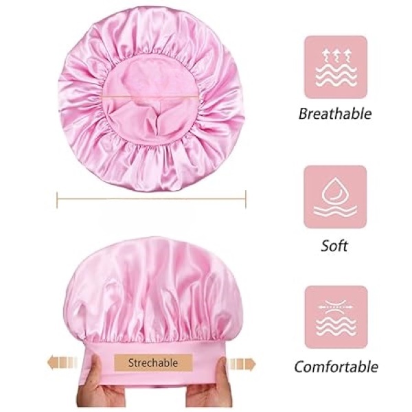 Boneta noastră prezintă un design cu margine largă, realizat dintr-un material satinat premium, asigurând un confort ultim fără a sacrifica stilul. Banda largă este concepută să se întindă pentru o potrivire personalizată, oferind protecție luxoasă și sigură pentru păr.